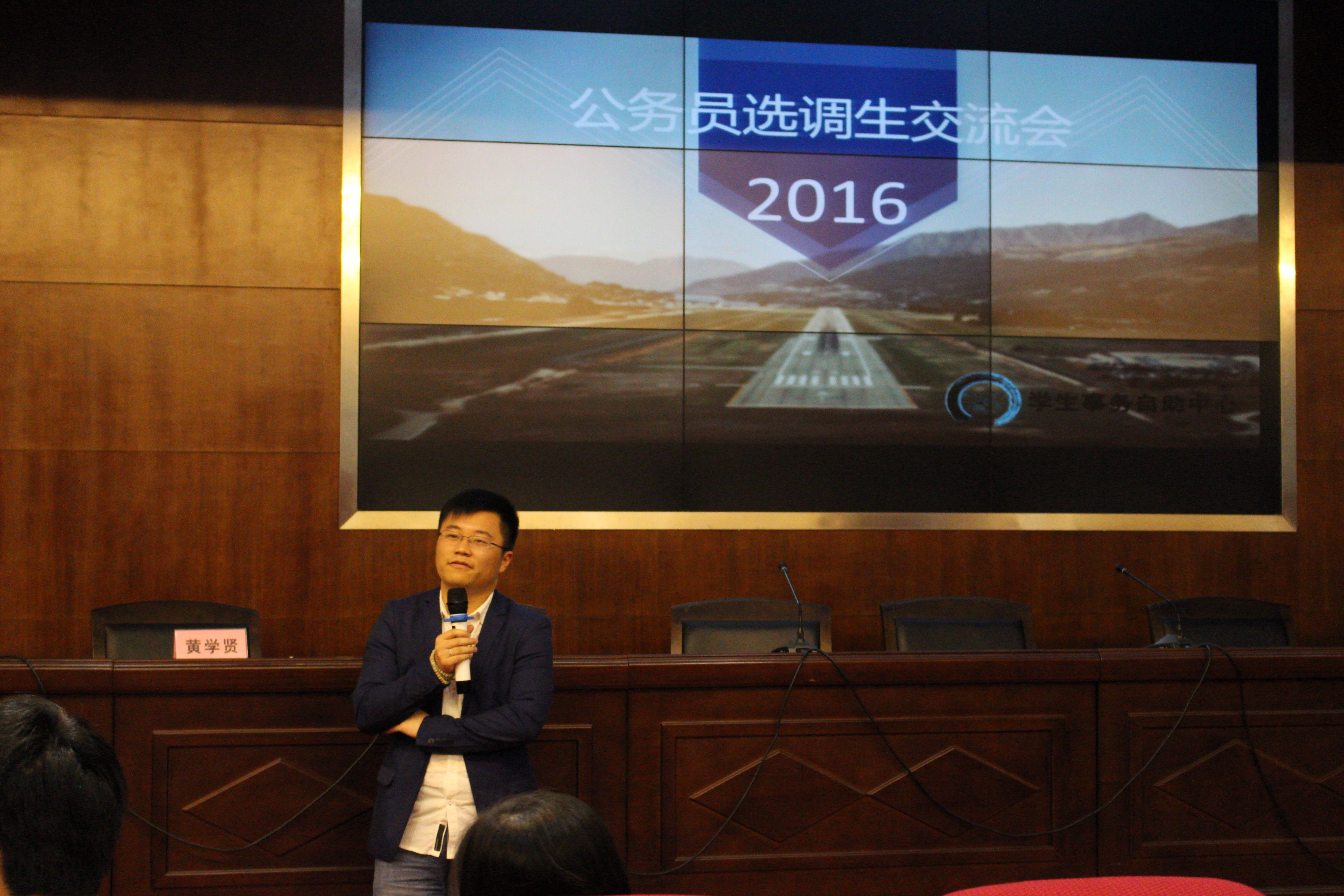 初夏晴暖,16年公务员考试交流会于5月17日晚七点在东吴大讲堂举行。主持人何新与陈佳伟感叹着12届学长学姐即将毕业,也祝贺着他们在公务员考试中取得的优异成绩。随后主持人对学长学姐能在百忙之中抽出时间来为大家传授经验表示感谢,希望大家能有所收获。下面放映了一段关于公务员考试报名激烈情况的报道,数千人竞争一个职位,情势可谓严峻之极。