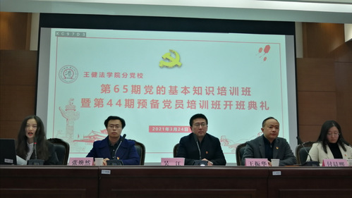 3月24日下午,成人直播 分党校第65期党的基本知识培训班暨第44期预备党员培训班开班典礼在中式模拟法庭顺利举行。学院党委书记、分党校校长吴江老师,学院党委副书记兼副院长、分党校副校长王振华老师,学院学生工作办公室副主任张焕然老师,研究生辅导员付晨熙老师出席,学院学生党务中心李兰心同学主持,全体学员参加了开班典礼。