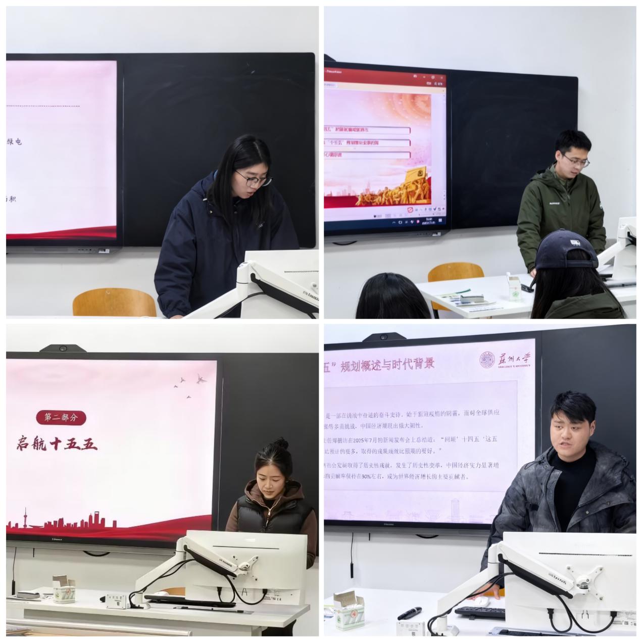 在感悟分享阶段,马克思主义学院代表以“启航十五五、融合家国情怀”为主题,从理论高度阐述了青年应当如何将个人理想与国家前途命运紧密结合;计算机科学与技术学院代表则围绕“启航十五五、苏大青年有话说”,结合专业特点畅谈科技报国的实践路径。两院学子的发言既有思想深度,又见行动担当,彰显了新时代大学生听党话、跟党走的坚定信念。
