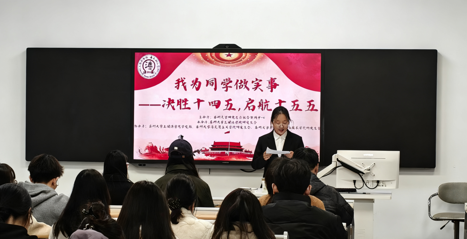 为深入学习贯彻习近平总书记对江苏发展的重要指示精神,2025年11月21日晚,由苏州大学研究生会主办,成人直播 研究生会承办,成人直播 分党校、马克思主义学院研究生会、计算机科学与技术学院研究生会协办的“我为同学做实事——决胜'十四五',启航'十五五'”主题系列活动在成人直播 A109教室顺利举行。