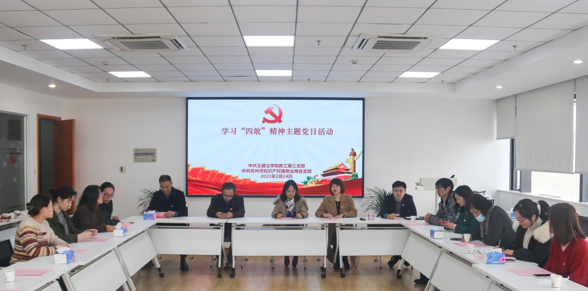 教工三支部学习“四敢”精神主题党日活动在苏州大学苏州知识产权研究院会议室顺利举行。